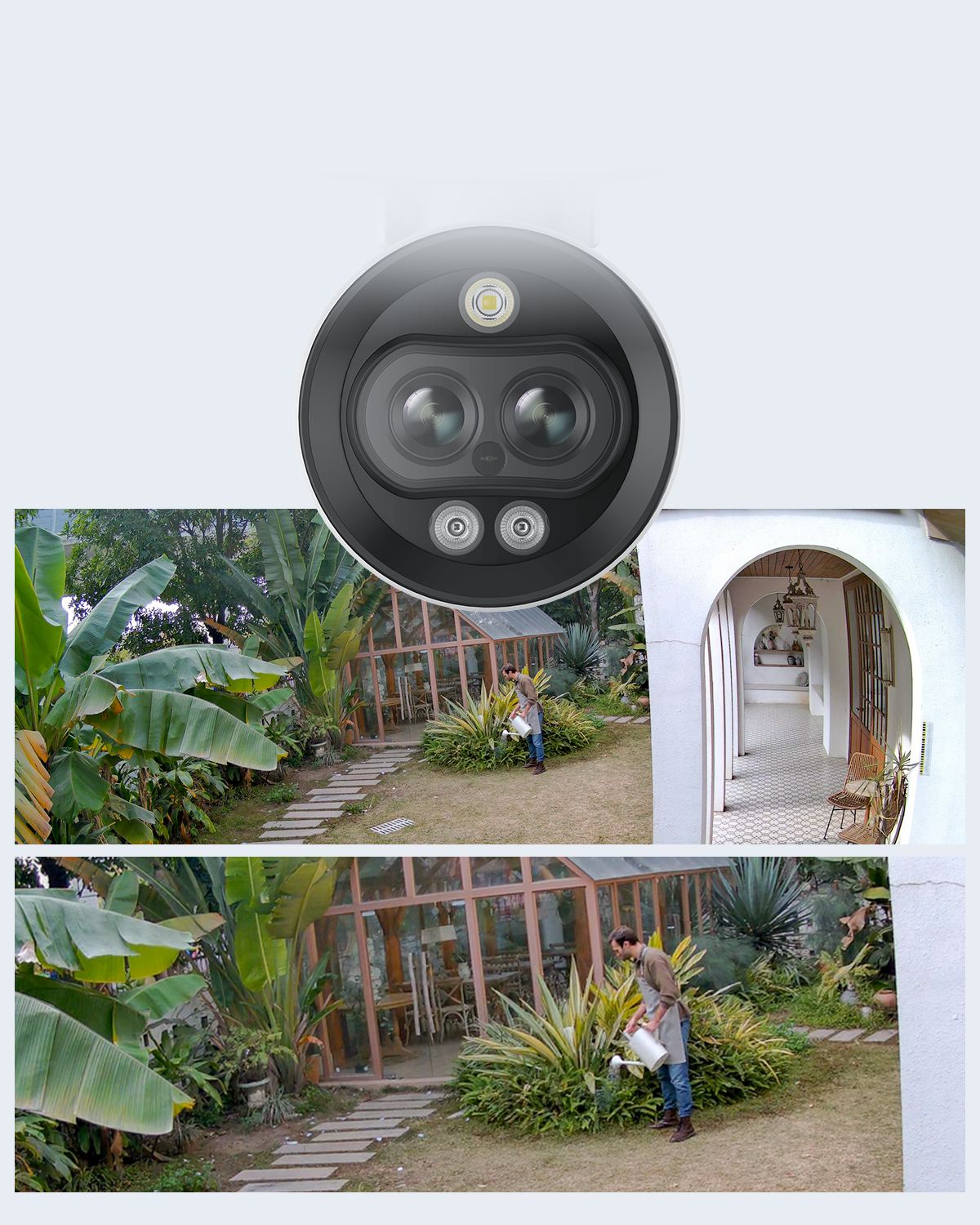 Získejte dva objektivy s jednorázovou instalací. Neztraťte přehled o jakémkoli koutě na Vašem území. Tato kamera díky panoramatickému pohledu v úhlu 109° zachycenému širokoúhlým objektivem a pohledu zblízka teleobjektivem chrání to, na čem Vám záleží.