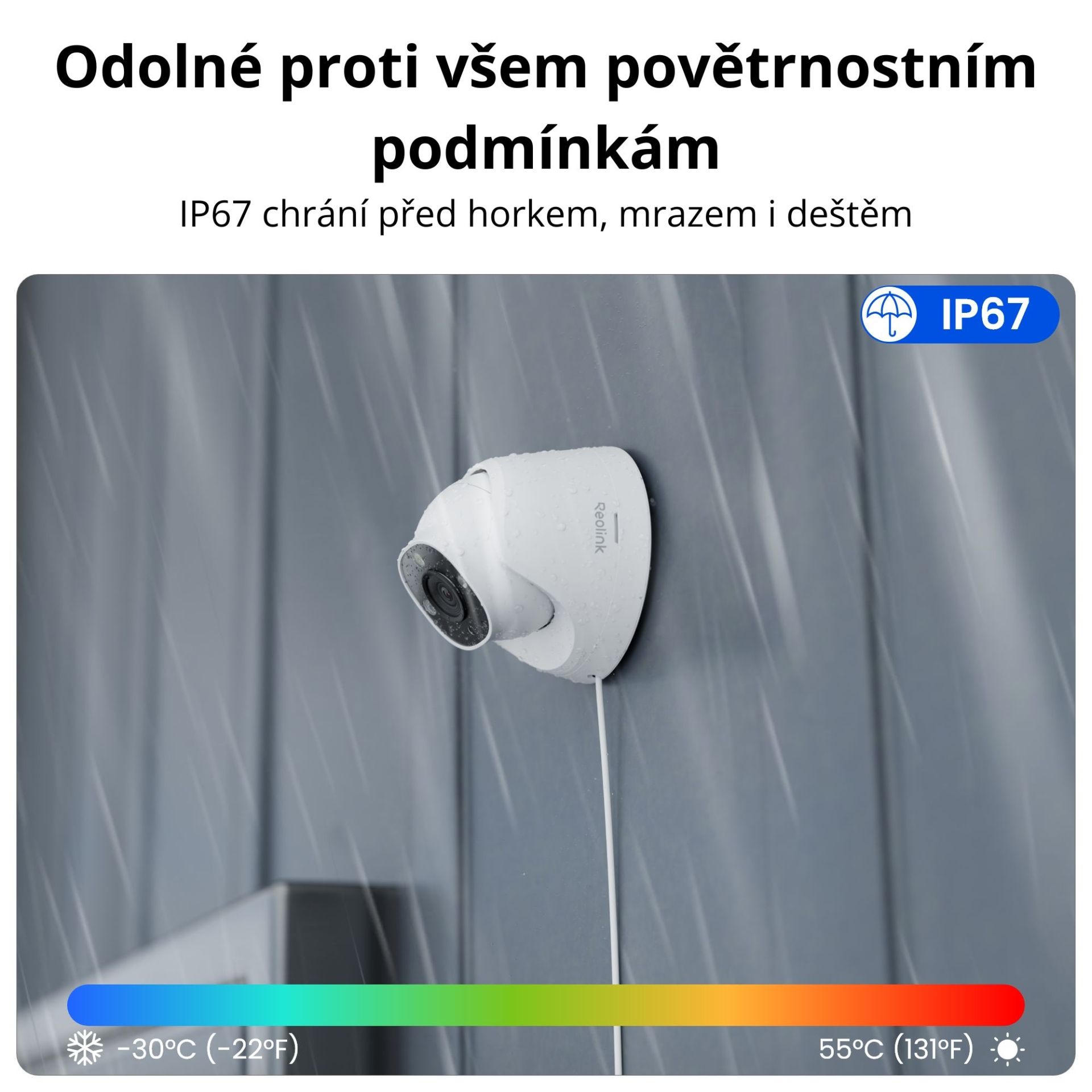 Kamera je vybavena technologií PoE (Power over Ethernet), která umožňuje snadnou instalaci a eliminuje potřebu samostatného napájecího zdroje. Díky flexibilním možnostem instalace poskytuje kamera odolné a vysoce výkonné sledování pro širokou škálu využití – od obytných prostor až po komerční objekty.