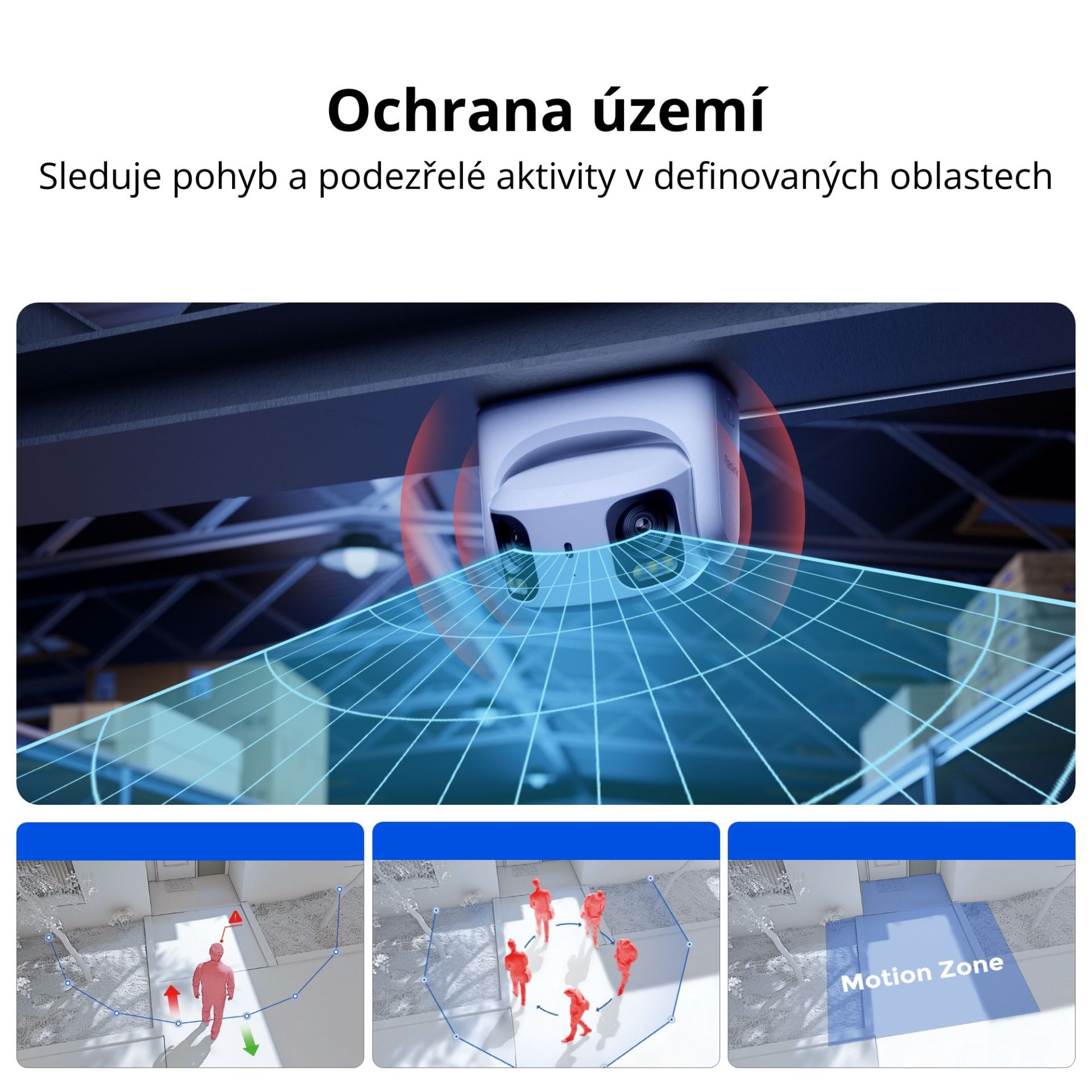 Ochrana území: výstraha při překročení hranice, výstraha při vniknutí do zóny, výstraha při zdržování se v zóně.