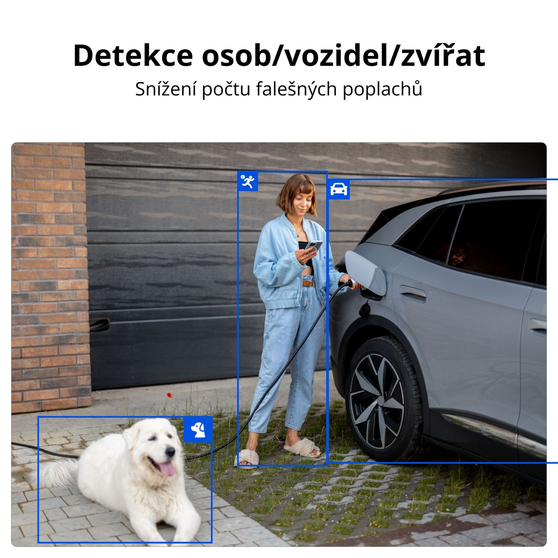 Detekce pohybu, osob, vozidel, zvířat.